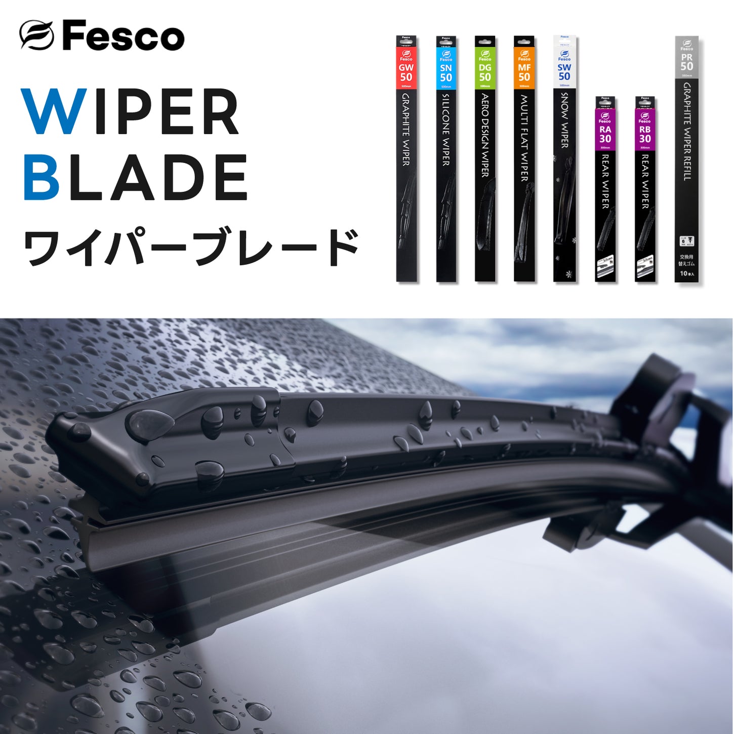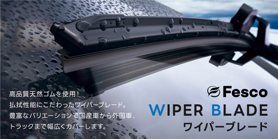 ワイパーの品質はゴムで決まる!高品質天然ゴムを採用したFESCO(フェスコ)ワイパーブレード。■グラファイト+モリブデンのダブルコーティングなめらかな拭き取りを実現するグラファイト粒子とモリブデン粒子のダブルコーティング。繰り返しの使用でもその潤滑性が長期間に渡って持続します。■高品質の天然ゴムを使用ワイパーの基本性能を左右するゴムの材質には、マレーシア産の高品質天然ゴムを使用。低気温でも固くなりにくいゴムが、静かで確かな拭きを実現します。●内容量:1本●取付形状:Uクリップタイプ※ワイパー形状が異なる一部の車種では払拭性能の違いや若干の拭き残しなどが生じる場合があります。予めご了承ください。※ガラスに油膜が付いていると新しいワイパーでも拭きが悪くなります。※細かい石など異物が付いたままワイパーを作動させるとガラスに傷が付く恐れがあります。 ワイパーブレードの適合を調べる ※PDFが新しいウィンドで開きます