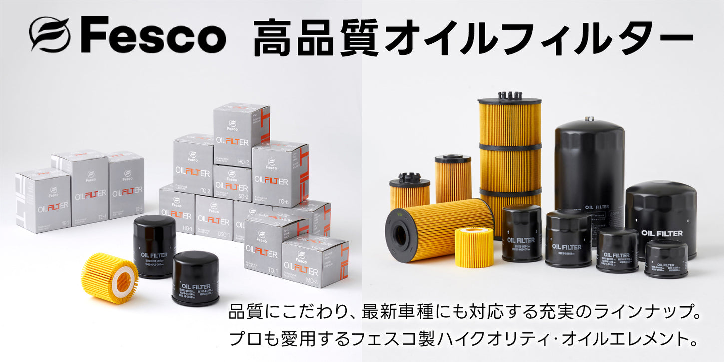 品質にこだわり、最新車種にも対応する充実のラインナップ。プロも愛用するFesco(フェスコ)製ハイクオリティ・オイルエレメント。